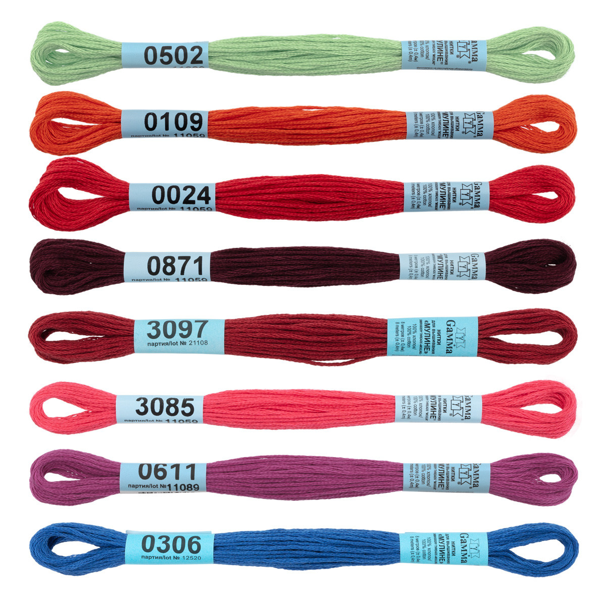 Нитки для вышивания Gamma набор мулине " СПЕКТР" 100% хлопок 7 x 8 м apple